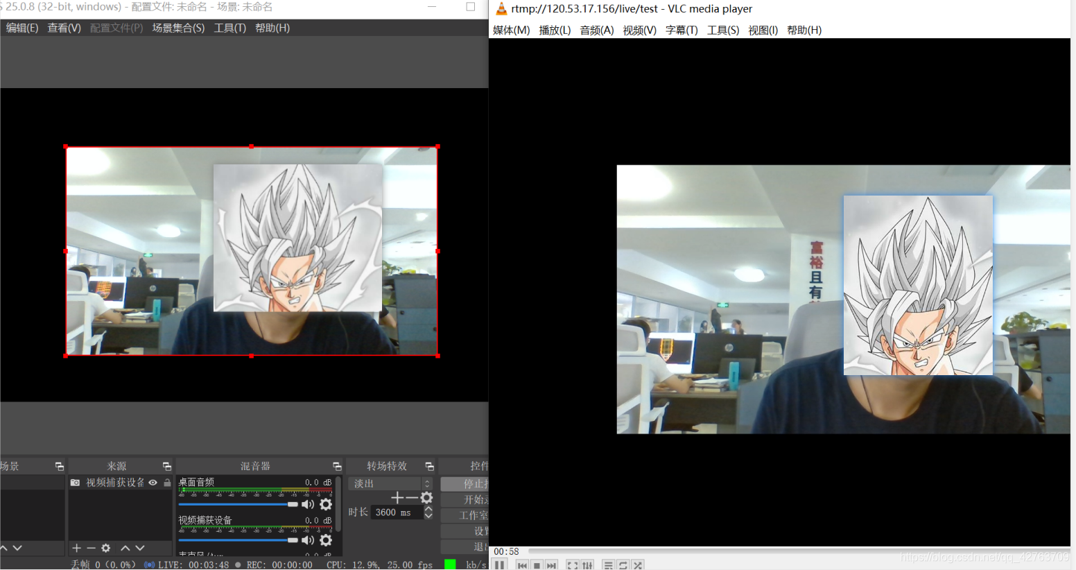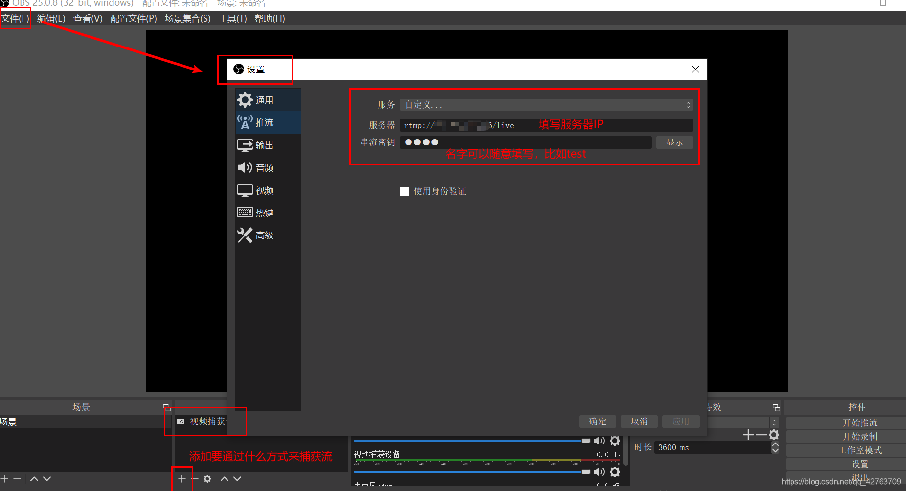 使用OBS 进行推流,完成后点击推流