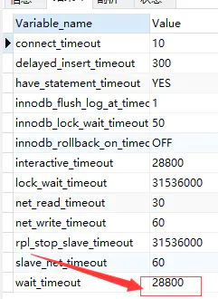好了,问题找到了,把这项改成28800(8小时),再重启mysql